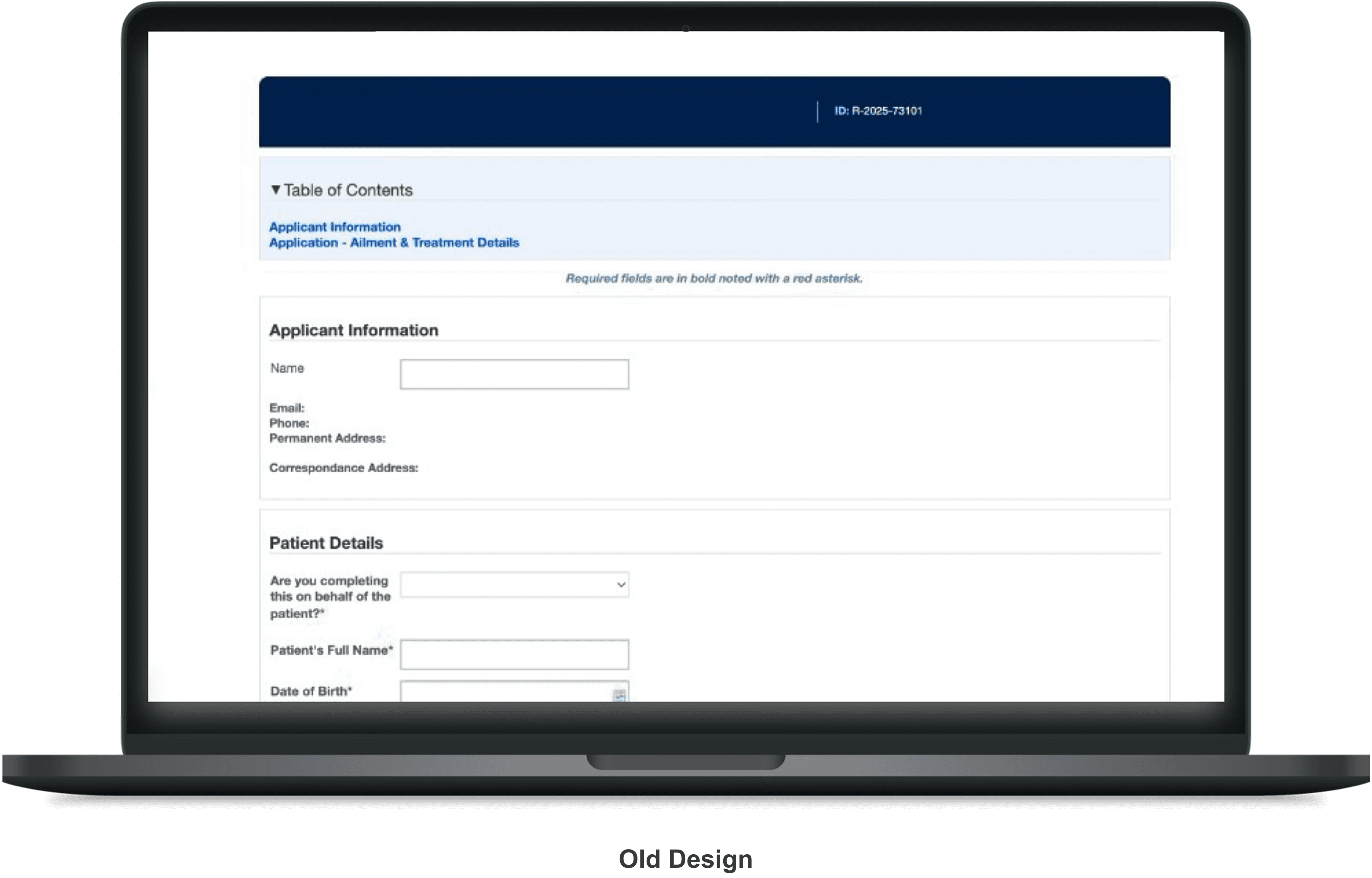 An overwhelming and excessively lengthy application form with minimal user guidance. An intuitive application form with clear, upfront instructions.