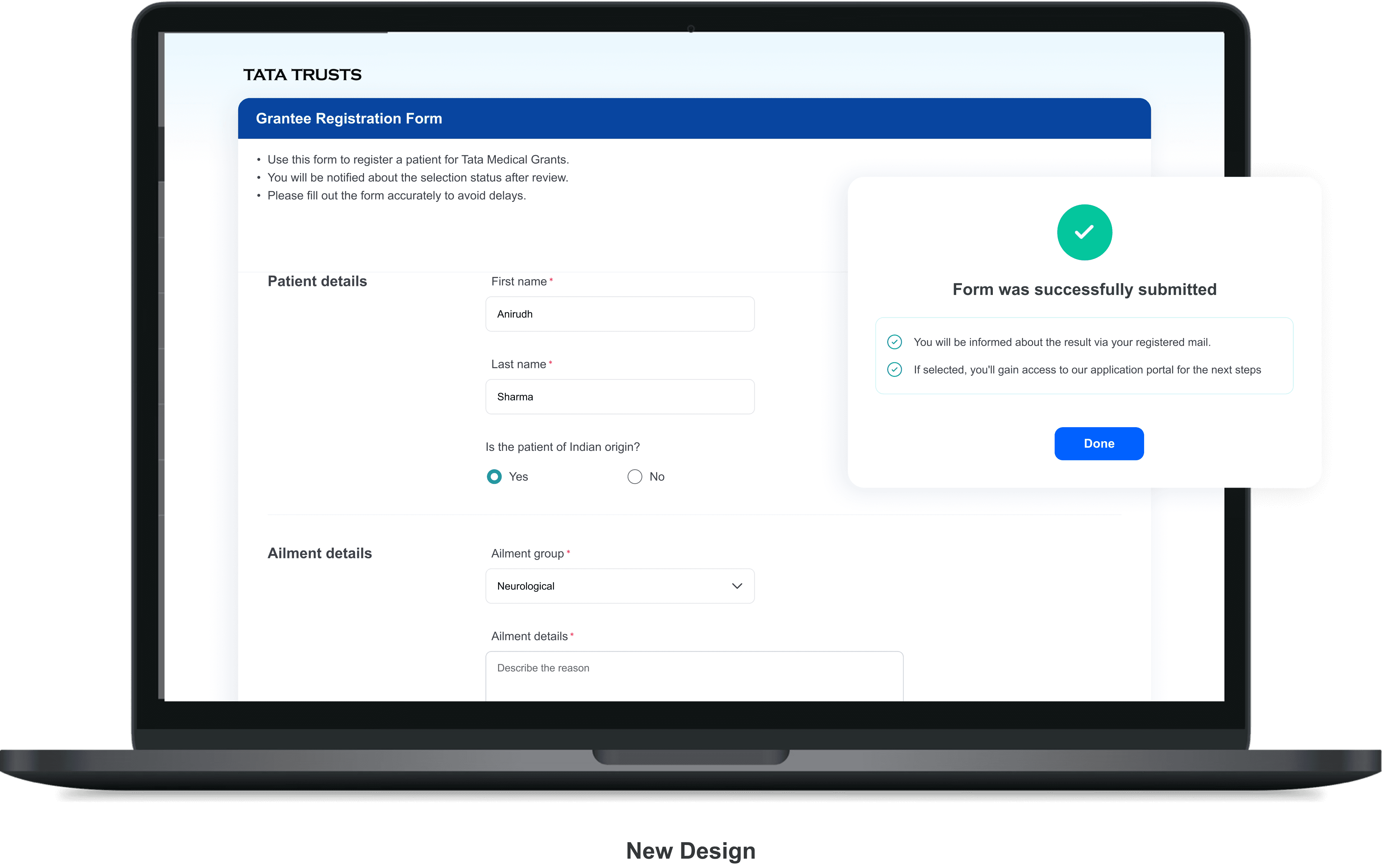TATA TRUSTS aims to make their existing medical grant digital application process easier and more efficient for individual applicants and medical social workers who apply on behalf of patients of a hospital.
