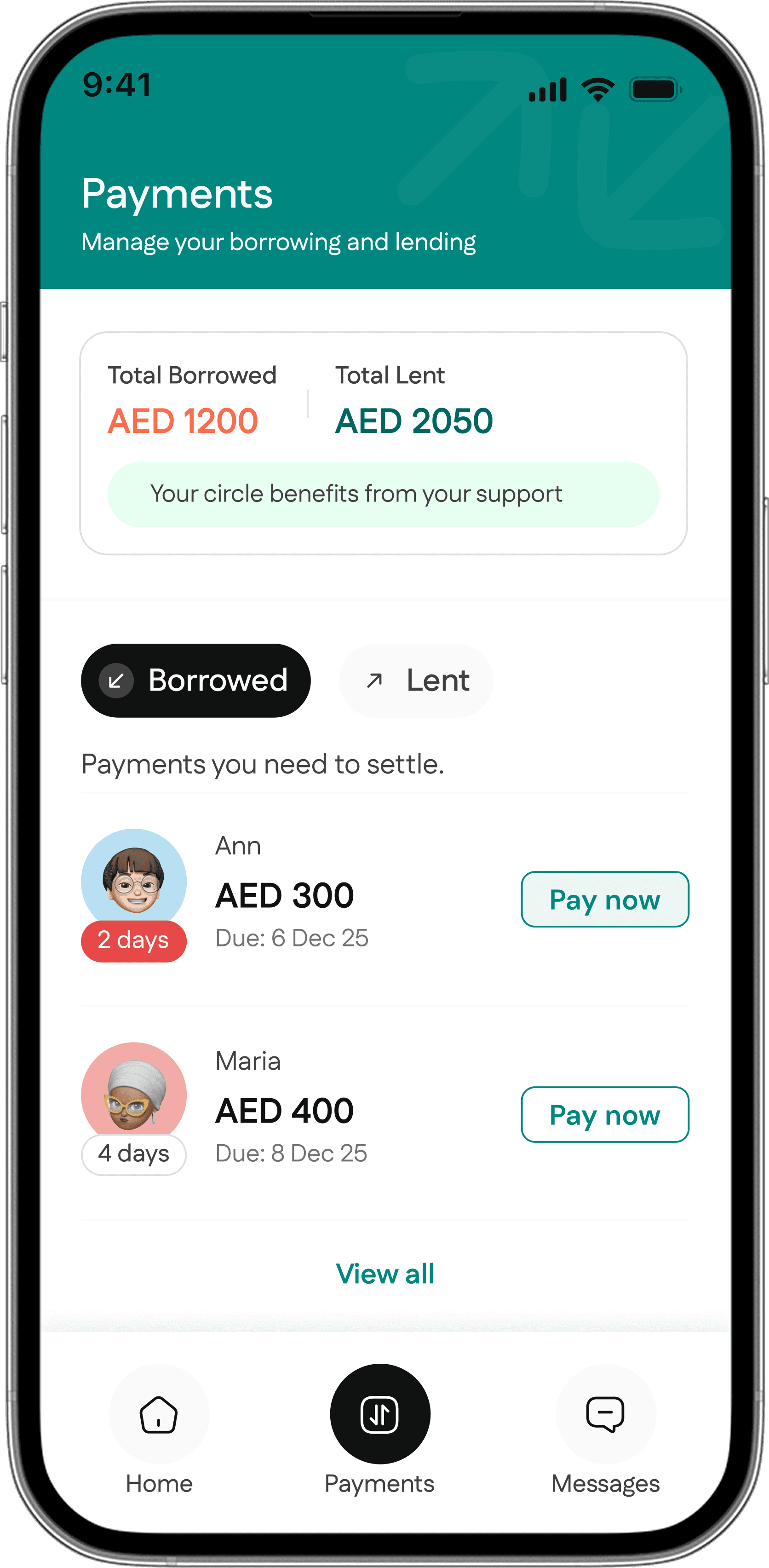 A mobile app empowering simple and stress-free borrowing and lending with personal circle.